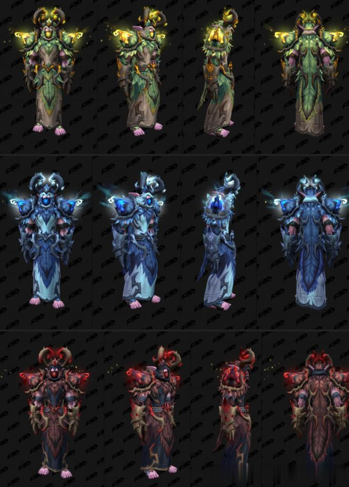 从至暗之夜Alpha版本中挖掘了一些第一赛季套装模型,但是还不算很全,有几个职业还没找到。